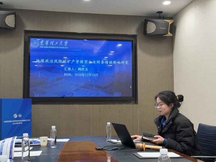 本届会议旨通过专家学者报告和青年学者论坛的形式,搭建高水平的学术交流与合作平台。硕士研究生韩欣玉以《地缘政治风险对矿产资源型企业财务绩效的影响研究》为题汇报研究成果,并与其他高校的老师和研究生进行了充分的探讨。